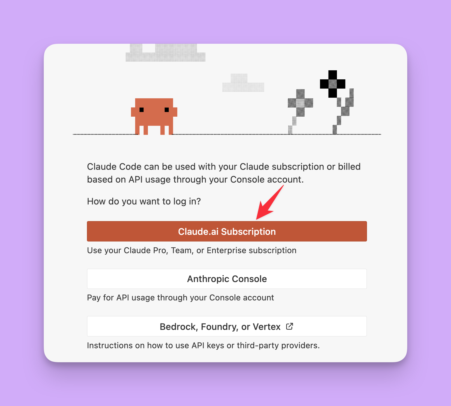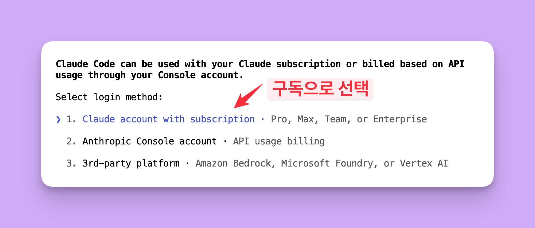 - 로그인 방법 → Claude account with subscription 선택