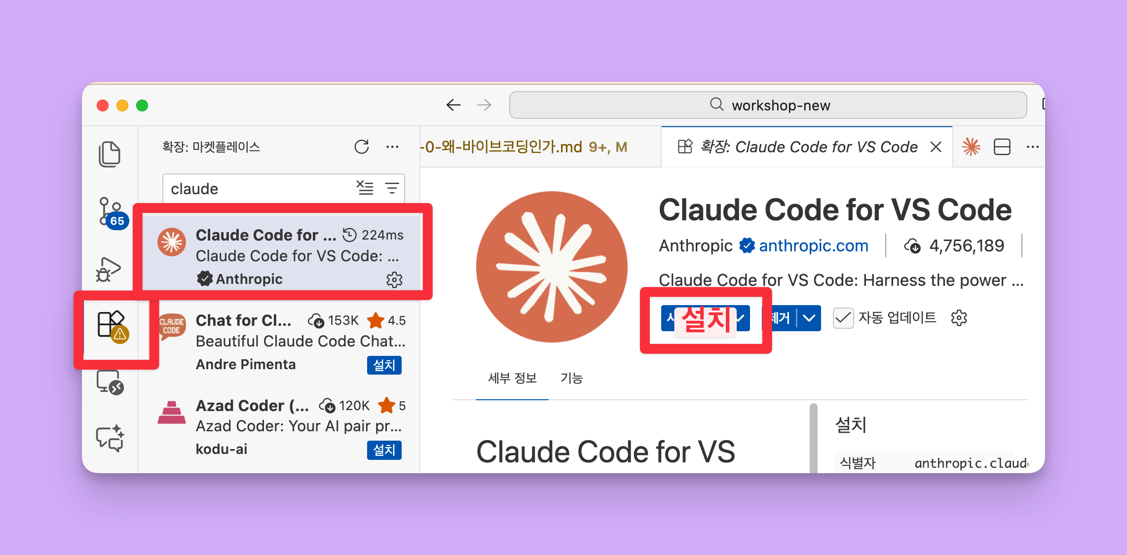 Step 5. Claude Extension 설치 (가장 쉬운 방법!)